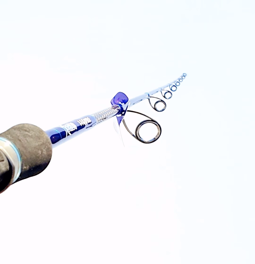 Caña de alta gama Xorus Ligure de 1.88 mts (1 Tramo), Fabricada en carbono de alto módulo, Acción hasta 130 gr, peso total de 103 gr + anillado y portacarretes fuji.