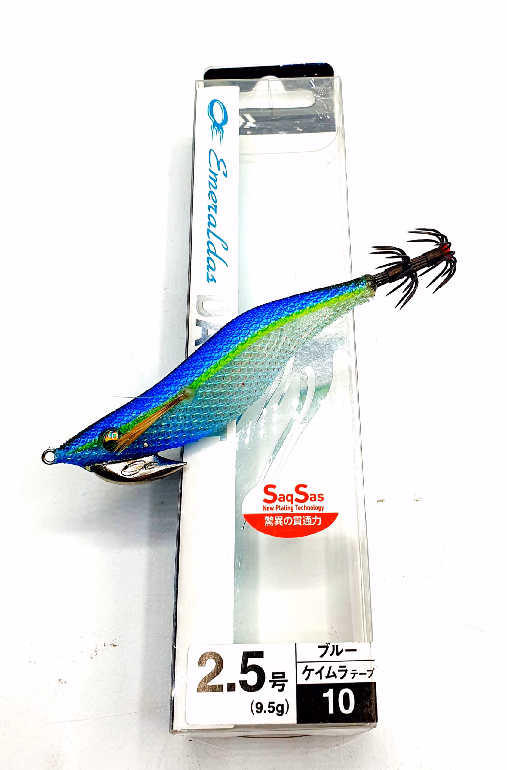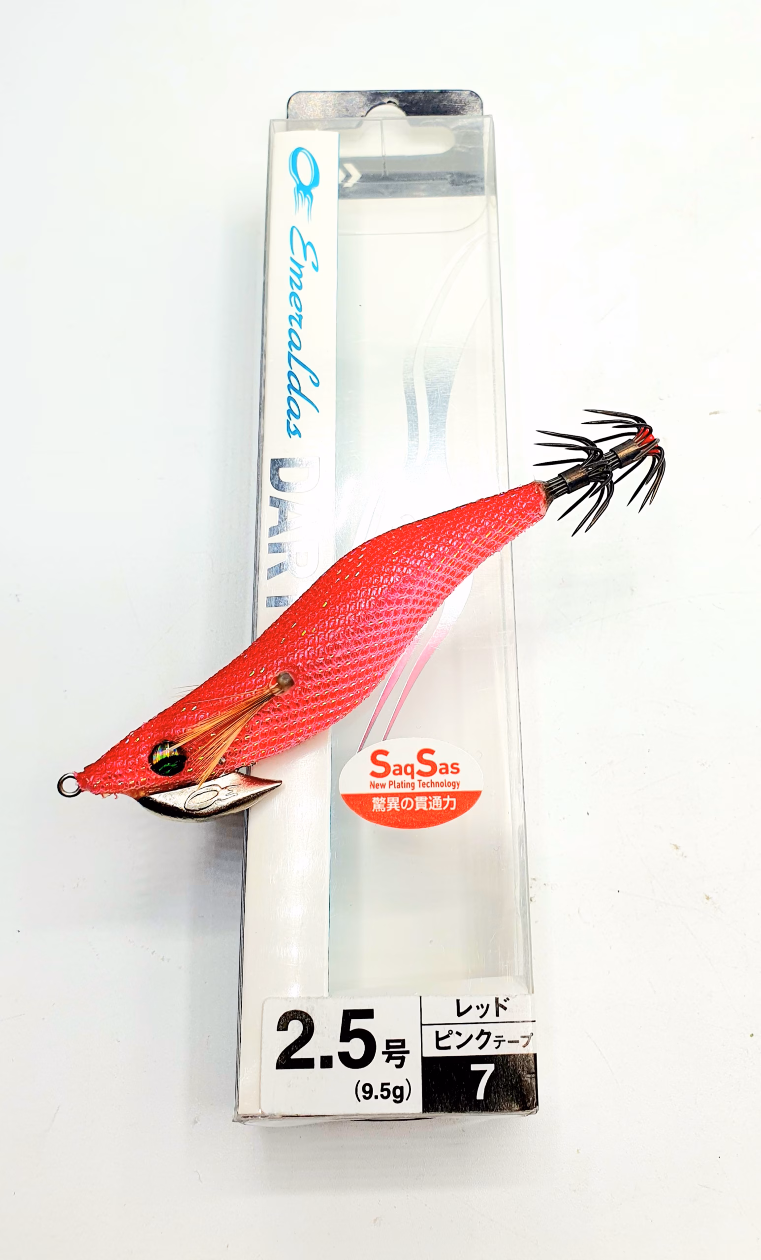 Jibioneras Daiwa Emeraldas DAT II 2.5 (9,5 g). Diseñadas específicamente para eging técnico y pesca de calamar y sepia. El modelo DART II destaca por su cuerpo equilibrado y su sistema de desplazamiento interno que mejora la estabilidad en vuelo, permitiendo lances más largos y precisos incluso con viento.