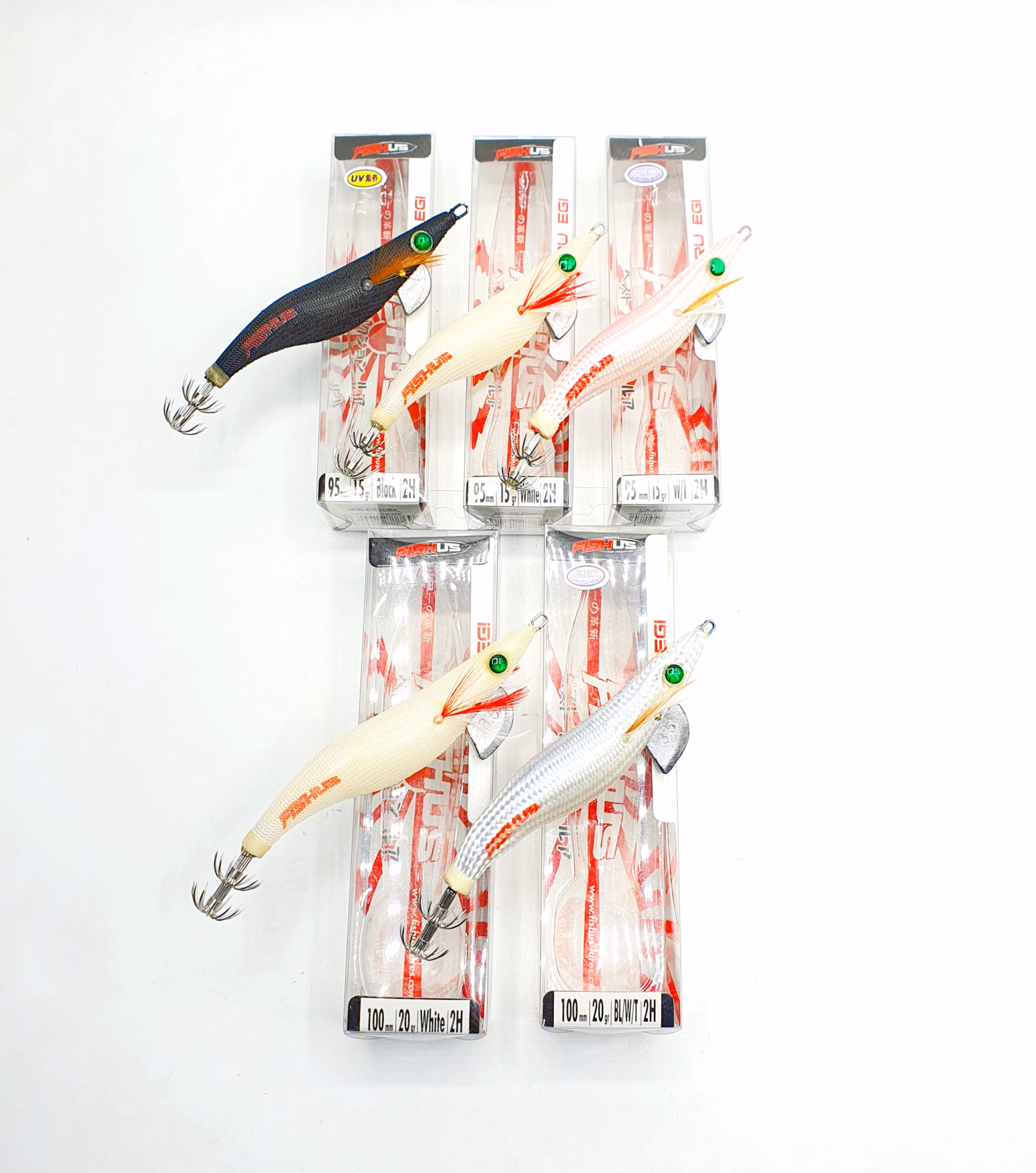 Lote compuesto por 5 egis FUSHUS GURU de alta calidad, diseñados para ofrecer máximo rendimiento en la pesca de calamares y sepias. Una selección equilibrada de tamaños que permite adaptarse a distintas condiciones de mar, profundidad y actividad del cefalópodo, aumentando las posibilidades de éxito en cada jornada.
