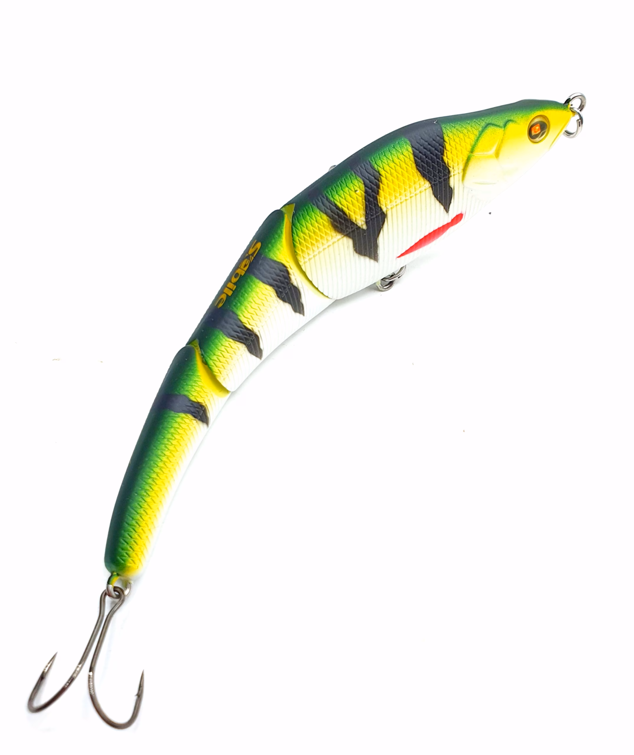 El acabado en color perca aporta un alto nivel de realismo, imitando a una de las presas más habituales en muchos entornos de agua dulce. Este detalle aumenta significativamente la efectividad del señuelo, especialmente en aguas claras o con presión de pesca.