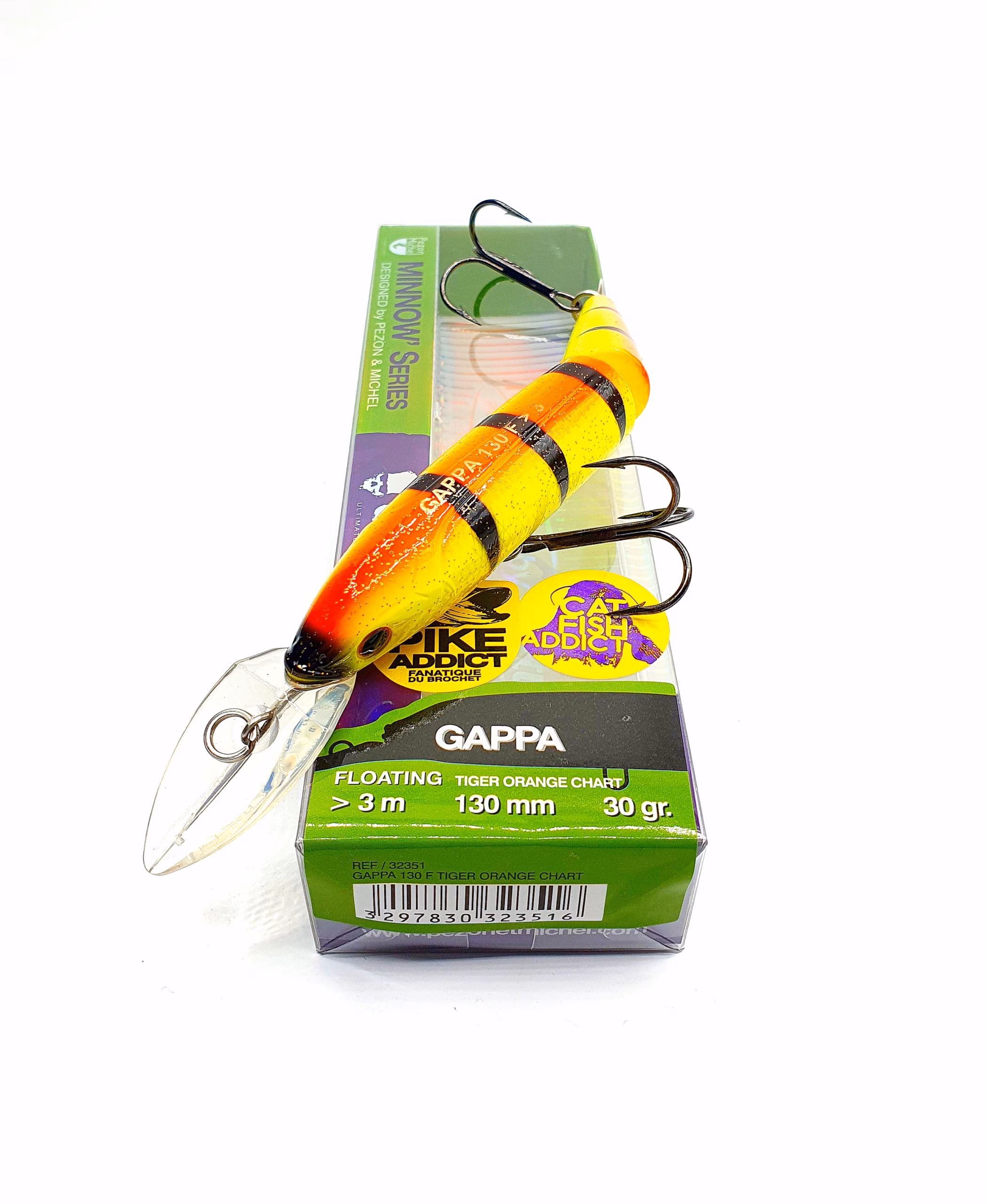 Si buscas un señuelo robusto, profundo y extremadamente llamativo para grandes depredadores, el Gunki Gappa 130 mm 30 g Floating Siluro Tigre Orange es una apuesta segura para tu caja de pesca.